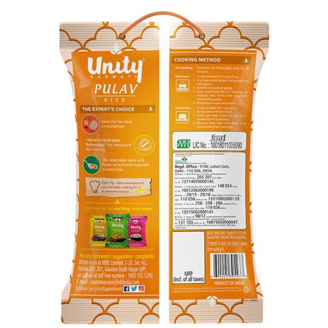 India Gate Unity Pulav Rice is an excellent choice for all rice-based dishes. This is a pack of high-quality, flavorful rice sourced from the best farms in India. Its exquisite flavour can win anyone's heart. This aromatic rice has a sweet buttery flavour. Basmati rice has a high fibre content and a lower glycemic index, making it healthier than regular rice grains. These go well with a variety of curries, braised or roasted meats, and as the main ingredient in everyone's favourite classic Biryani. Explore a plethora of rice options from India Gate only on Big Basket.