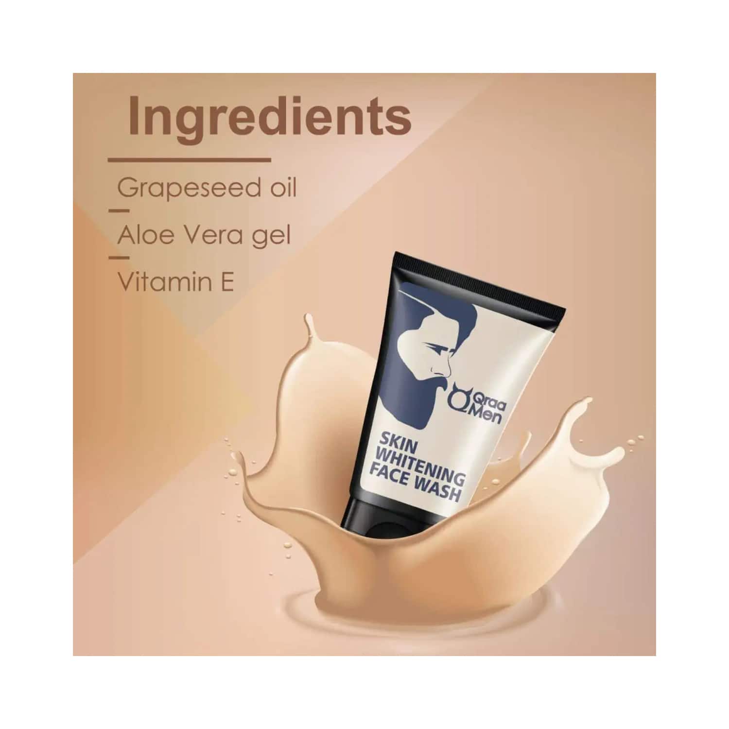 Enhance the glow of your face with the Qraa Men Vitamin C Skin Whitening Face Wash With Yogurt And Oatmeal - (100g). This vitamin C facewash provides deep cleansing and skin-lightening properties to brighten skin and prevent melanin production. The Qraa men's whitening facewash effectively rejuvenates the skin leaving it looking soft, white, and youthful.Key Features & Benefits:Enriched with oatmeal and yogurt to deeply clean your skin poresNourishing facewash provides moisturization to your skinExfoliating facewash removes all dead skin cellsFree from paraben, silicone, and synthetic for safe useKey Ingredients:Vitamin C: Provides a bright complexionYogurt: Replenish the moisture in your skinHow to Use:Take a small amount and apply it to the dampened face. Lather and eventually rinse with water. Use regularly for good results.About the Brand:Qraa is India's leading natural cosmetics company. India is known worldwide for its wealth of medicinal and therapeutic herbs and the 5,000-year-old Ayurvedic science that practices the effective use of these herbs. After that, Qraa created scientifically engineered products that deliver the same powerful benefits for longer in less time. They believe in the active use of ingredients. Each of their products contains a combination of extracts from various herbs to protect, heal and improve the face, body, and hair.Check out more Qraa Face Wash options here, or browse through tokocart's full range of Face Wash from top global brands.You can also explore other products from the world of Qraa here on tokocart.