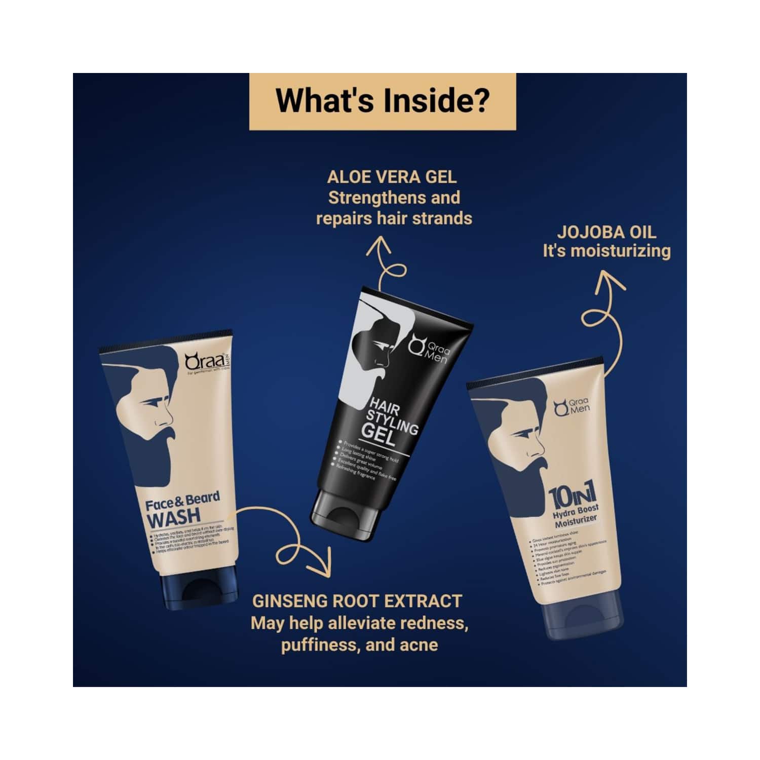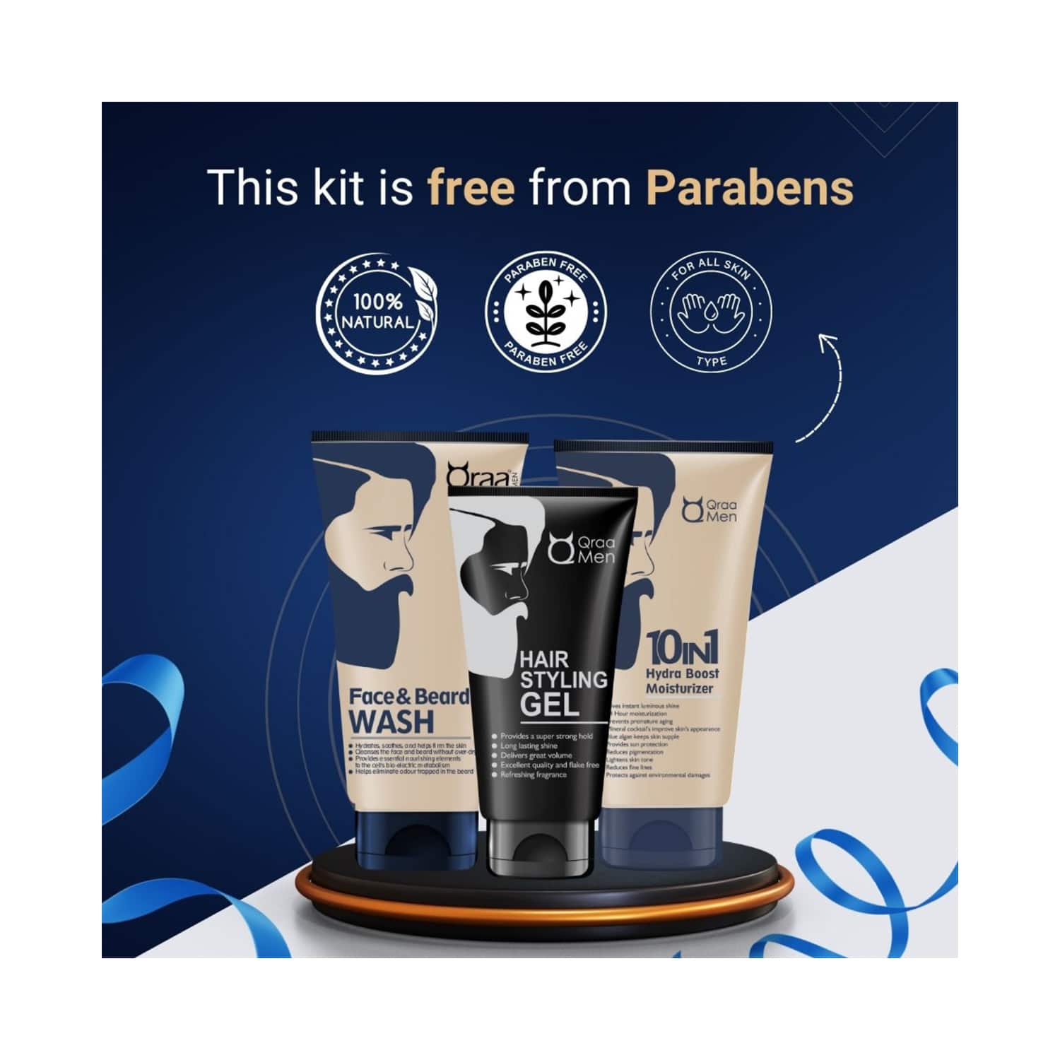 Qraamen Winter Care Kit with Hair Styling Gel Face & Beard Wash Boost Moisturizer (3 pcs)