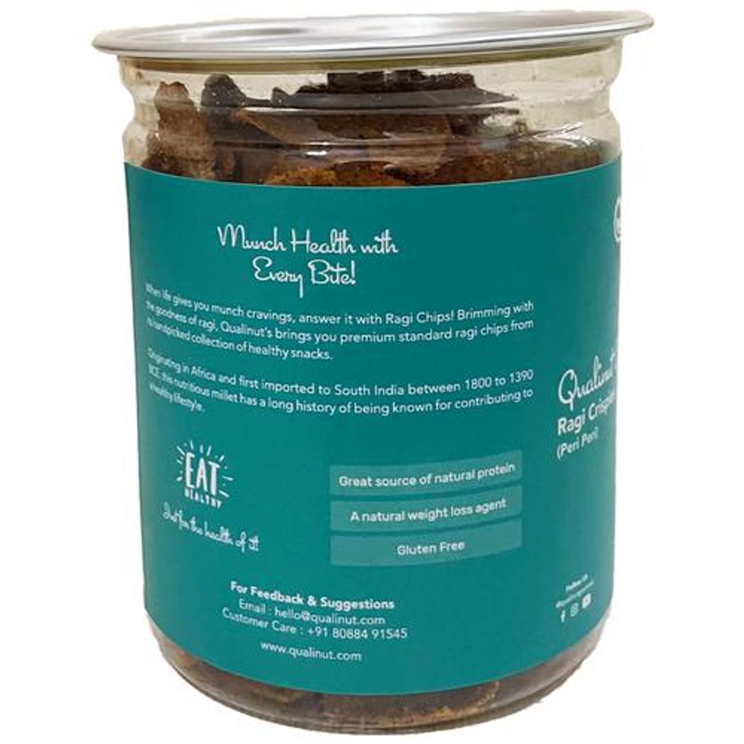 The Qualinut Gourmet Peri-Peri Ragi Crispies is the perfect example of a healthy snack. With Qualinut Gourmet Peri-Peri Ragi Crispies you can Munch Health with Every Bite. The goodness of Ragi is immense. It helps significantly in weight loss, and aid in the treatment of critical diseases like Anaemia, Diabetes, and Osteoporosis. It is the Peri-Peri flavour-infused healthy snack that can be a replacement for your unhealthy munchies. It is gluten-free and 100% natural. Explore the wide range of Qualinut Gourmet Peri-Peri Ragi Crispies only on Big Basket.
