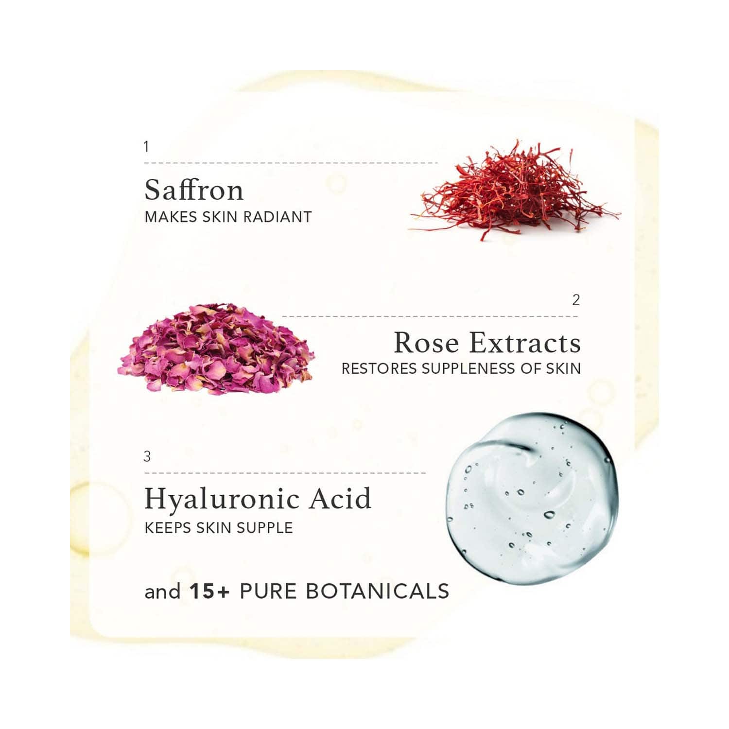 Key Ingredients:Rose and saffron extracts: Make the skin radiantHyaluronic acid: Keeps skin supple with hydrationOrange peel: Brightens the complexionCalendula: Has anti-inflammatory properties to soothe the skin