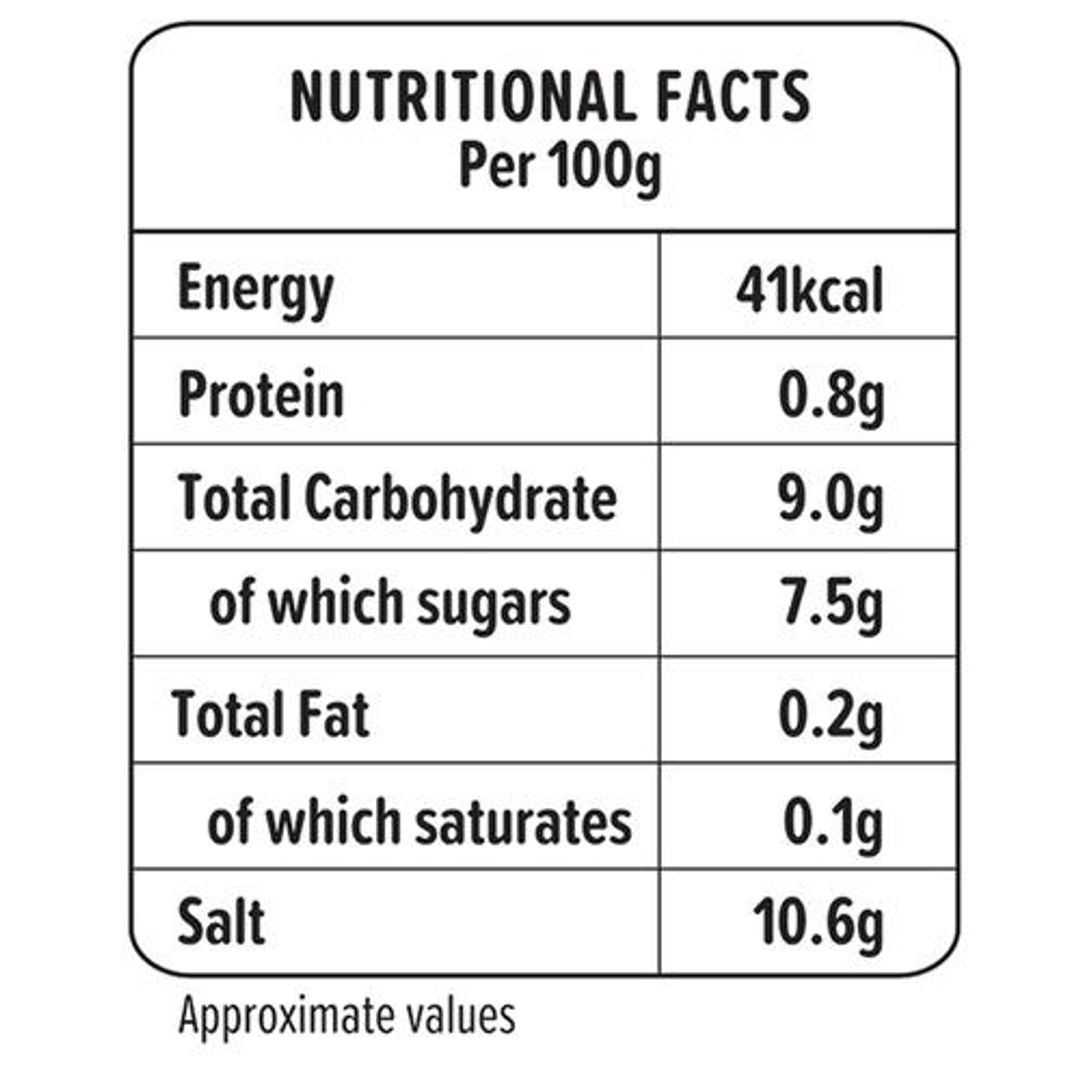 Chilli, water, sugar, salt, modified starch (INS1442), flavour enhancer: monosodium glutamte (INS621), stabiliser: xanthan gum (INS415), acidity regulator: acetic acid (INS260), preservative: sodium benzonate (INS211), sodium metabisulphite (INS223)