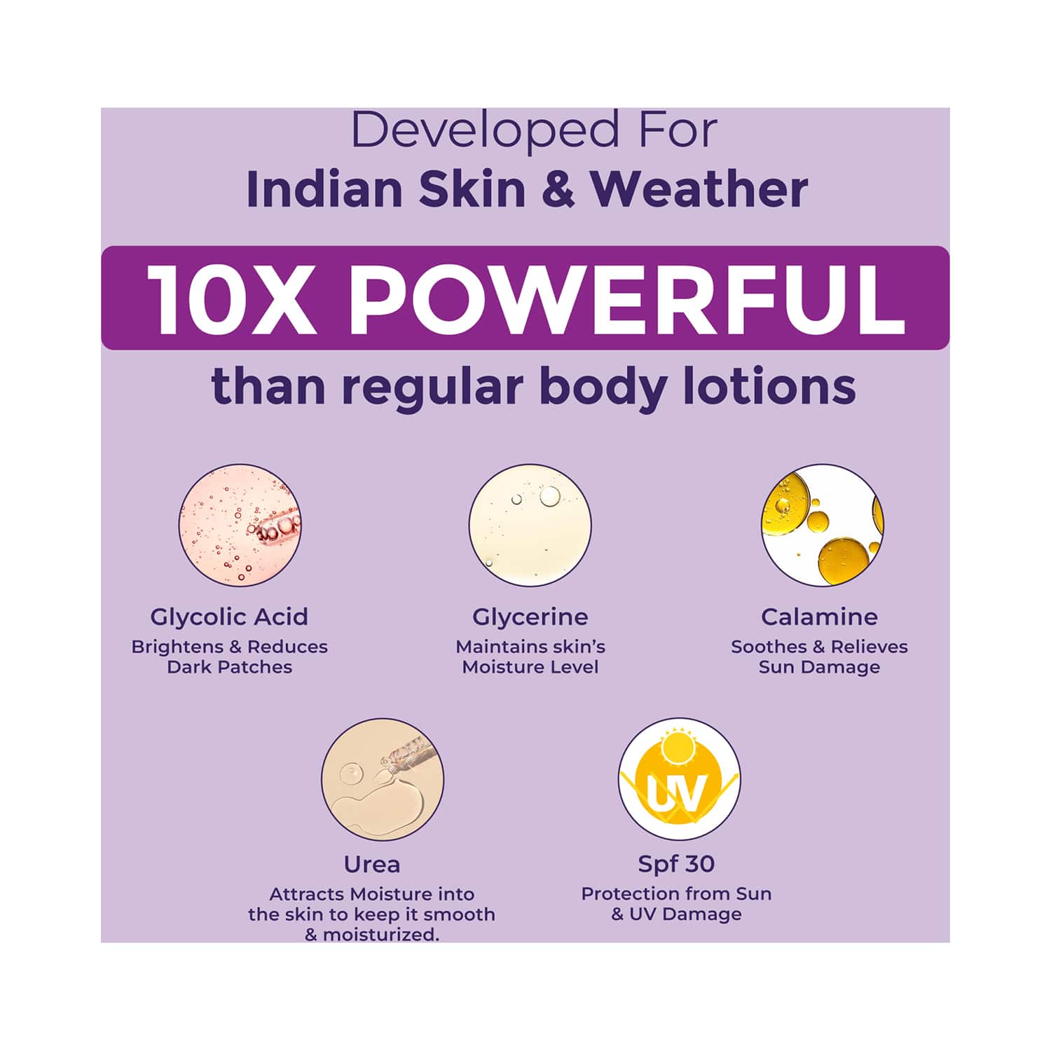 Key Features & Benefits:Infused with glycolic acid to reduce tan, pigmentation, and dark spotsSPF 30 protects the skin from sun damageOffers 24 hours hydration while instantly brightening the skinFast-absorbing formula does not leave a sticky residue