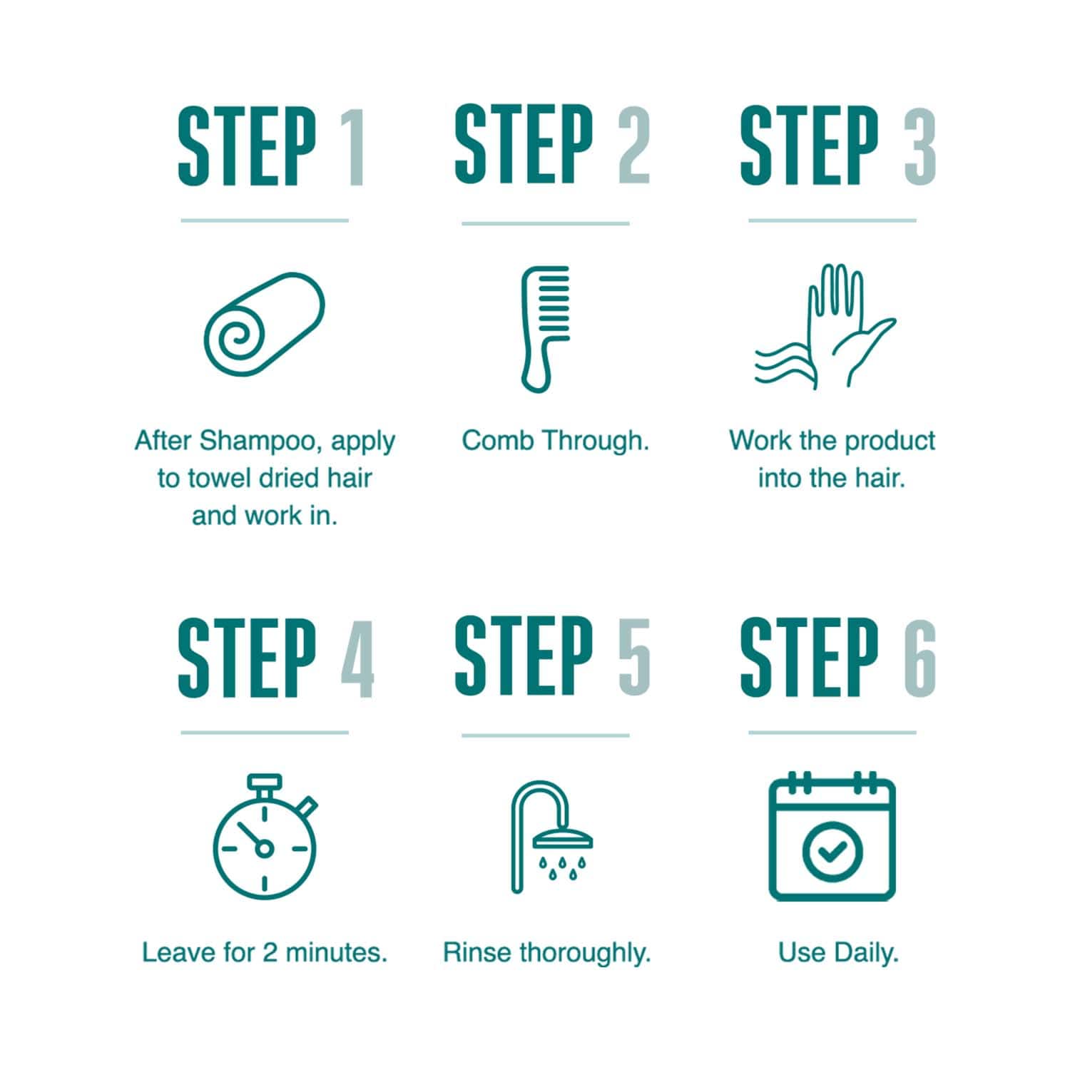 How to Use:Shampoo your hair and towel dry it. Take a necessary amount of the conditioner and work it into the strands. Leave it in your hair for 2 minutes, then rinse it off thoroughly.