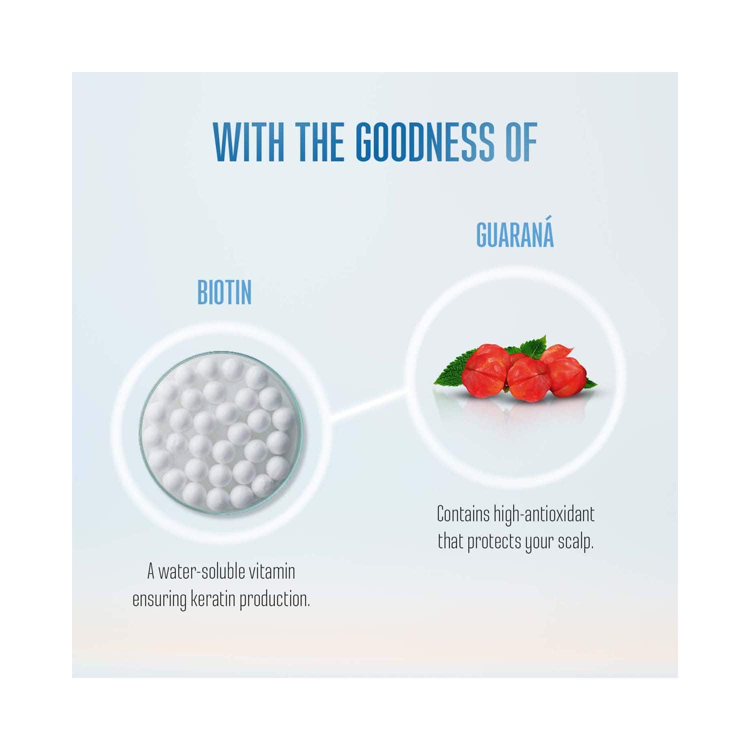 Key Ingredients:Guarana: Has antimicrobial and antioxidant benefitsBiotin: Thickens and strengthens the hairRice extract: Moisturizes the hairSoybean extract: Rebuilds damaged hair