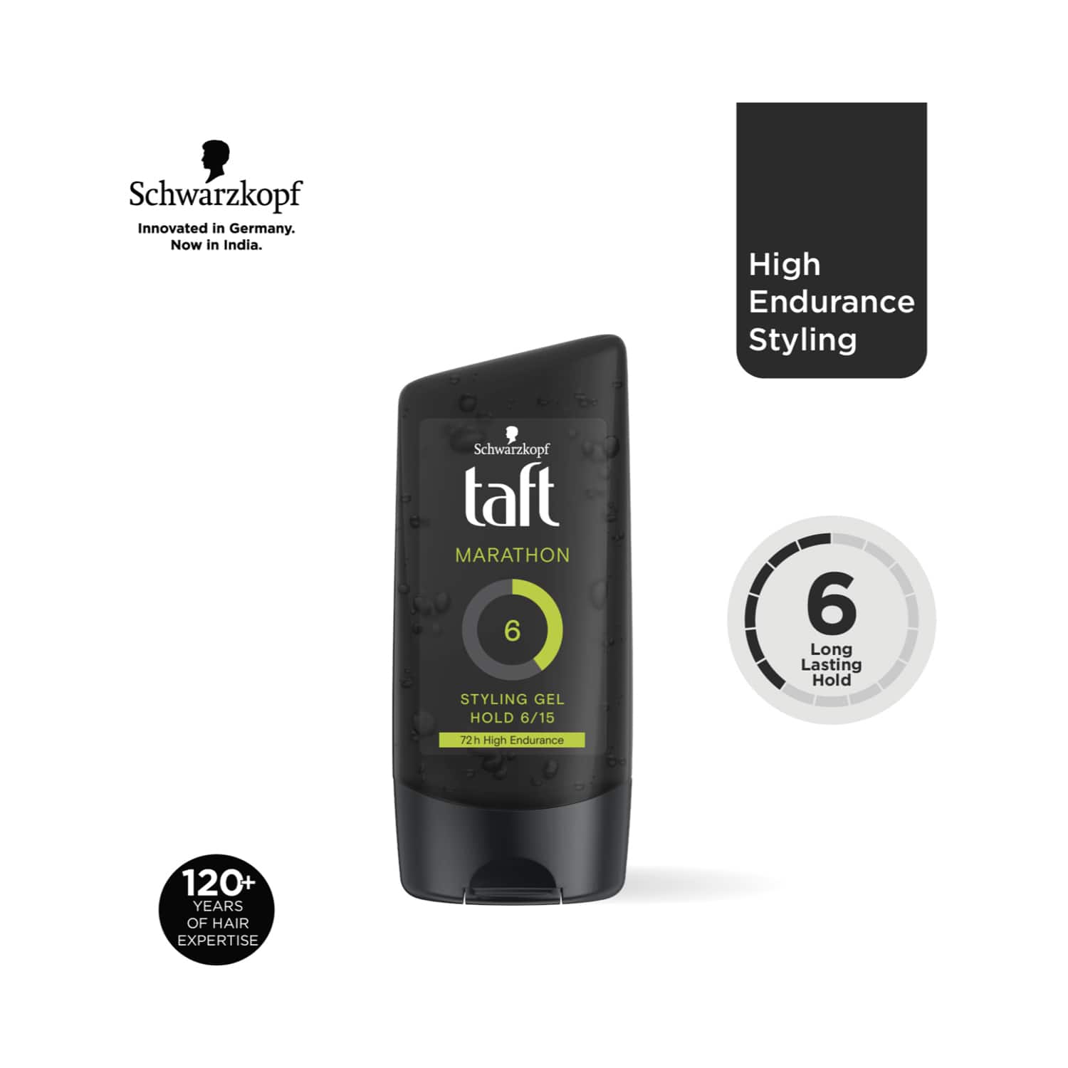Effortlessly groom your hair with the Taft Marathon Styling Gel (150ml). This hair styling gel holds your hair in place without leaving residue. It is a long-lasting hair gel that keeps your hair set for 48 hours. The Taft hair styling gel is also a hair-protecting gel that does not damage hair with regular use. Key Features & Benefits:Hair gel provides a strong hold to the hairstyleNon-sticky hair gel does not leave the hair greasyLong-lasting gel offers hold for 48 hoursVegan hair gel does not contain animal-derived ingredients All Ingredients:Water, Vp/Va Copolymer, Carbomer, Alcohol Denat., Methylisothiazolinone, Phenoxyethanol, Fragrance, Triethanolamine How to Use:Take the gel in your palms. Blend it and run your hands through the hair. About the Brand:Founded over 60 years ago, Taft is a hair-styling brand that has established itself as a leading brand in Europe. They create high-quality hair products that you can rely on. The brand provides hairsprays, lacquers, mousses, waxes, balms, and gels to ensure maximum hold without any stickiness or residue. Taft offers a wide range of products tailored to meet specific requirements and truly understands and caters to the needs of its customers.Check out more Taft Hair Stylings options here, or browse through tokocart's full range of Hair Stylings from top global brands.You can also explore other products from the world of Taft here on tokocart.