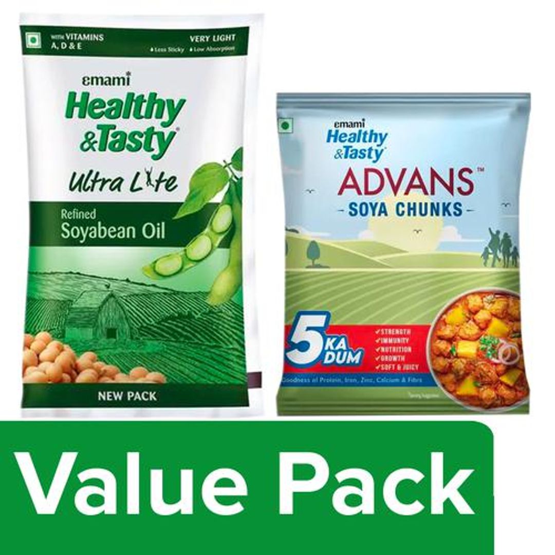Soya Chunks have been well-established as rich source of Vegetarian Protein. Emami Advans Soya Chunks comes with goodness of 5 Vital nutrients - Protein, Iron, Zinc, Calcium, Dietary Fibre. It provides 5 unique benefits such as - Strength, Immunity, Nutrition, Growth, Soft & Juicy. The soft texture of Emami Advansed Soya Chunks makes it compatible with a variety of Indian, Chinese & contemporary dishes. Blended with rice, salads, cutlets & curries Soya Chunks help make every dish healthier & tastier.