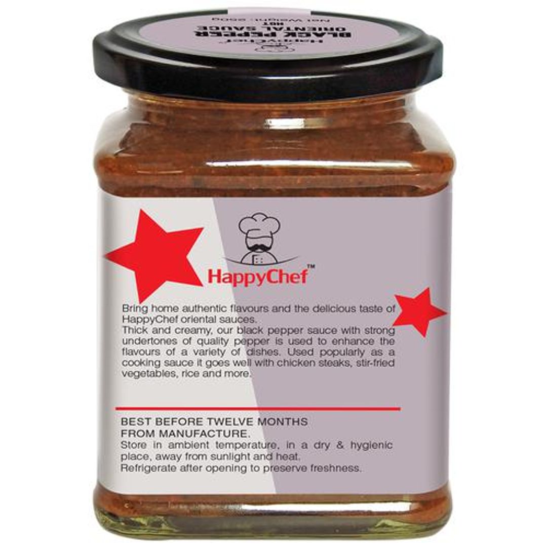 About the ProductCook with the flavours of the world with HappyChef Spicy Black Pepper Sauce and enjoy a flavourful meal. A perfect stir-fry sauce that can flavour up any bland food easily, this Black Pepper sauce can add a kick of heat to any of your oriental meals.