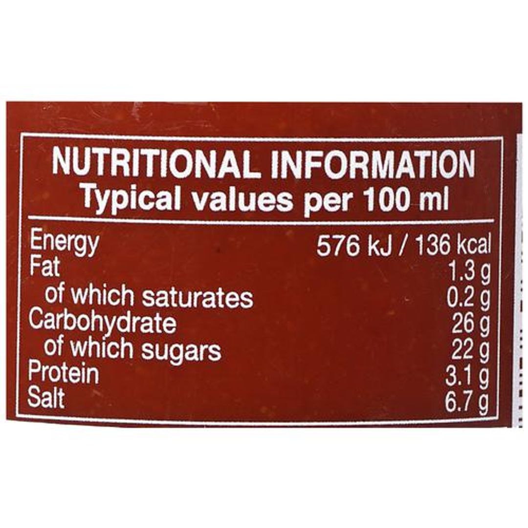 Chilli 61%, Sugar, Garlic, Salt, Water, Acidity Regulator: E260, E330; Flavour Enhancer: E621, Tomato paste, Stabiliser: E415, Onion, Spices, Preservative: E202.