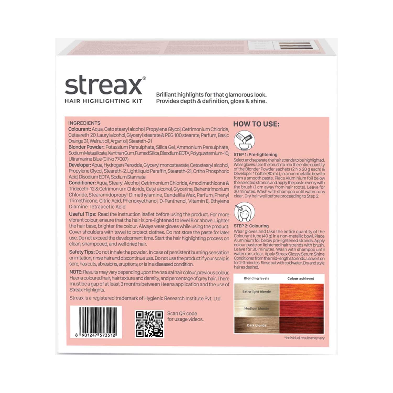 About the Brand:Launched in 2004, Streax is the first domestically manufactured Indian hair color brand. Since its launch, the brand has revolutionized the hair-care market by introducing hair colors that not only cover grey hair but inspire women to be confident in choosing their style. With time, this brand expanded its consumers by understanding the needs of modern Indian women. Now, it crafts a wide range of hair care products, from hair serums to highlight kits, all available on a cost-effective budget and formulated without chemicals.