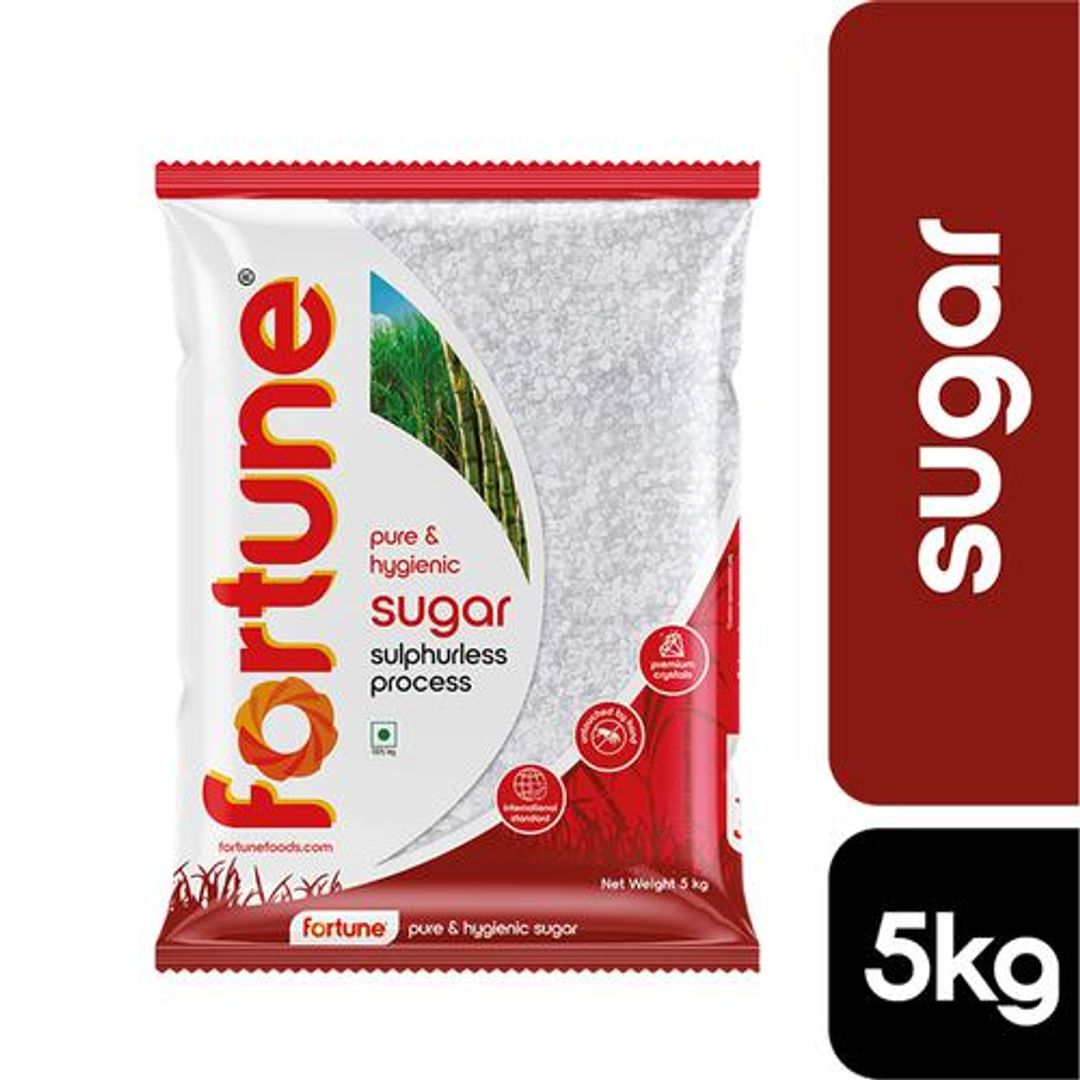 Fortune Pure & Hygienic Sugar meets the highest standard of hygienic thus ensuring premium quality sugar that's 100% natural. Sulphur less processing: The latest DRP technology ensures sugar is free from impurities and is fit for consumption.