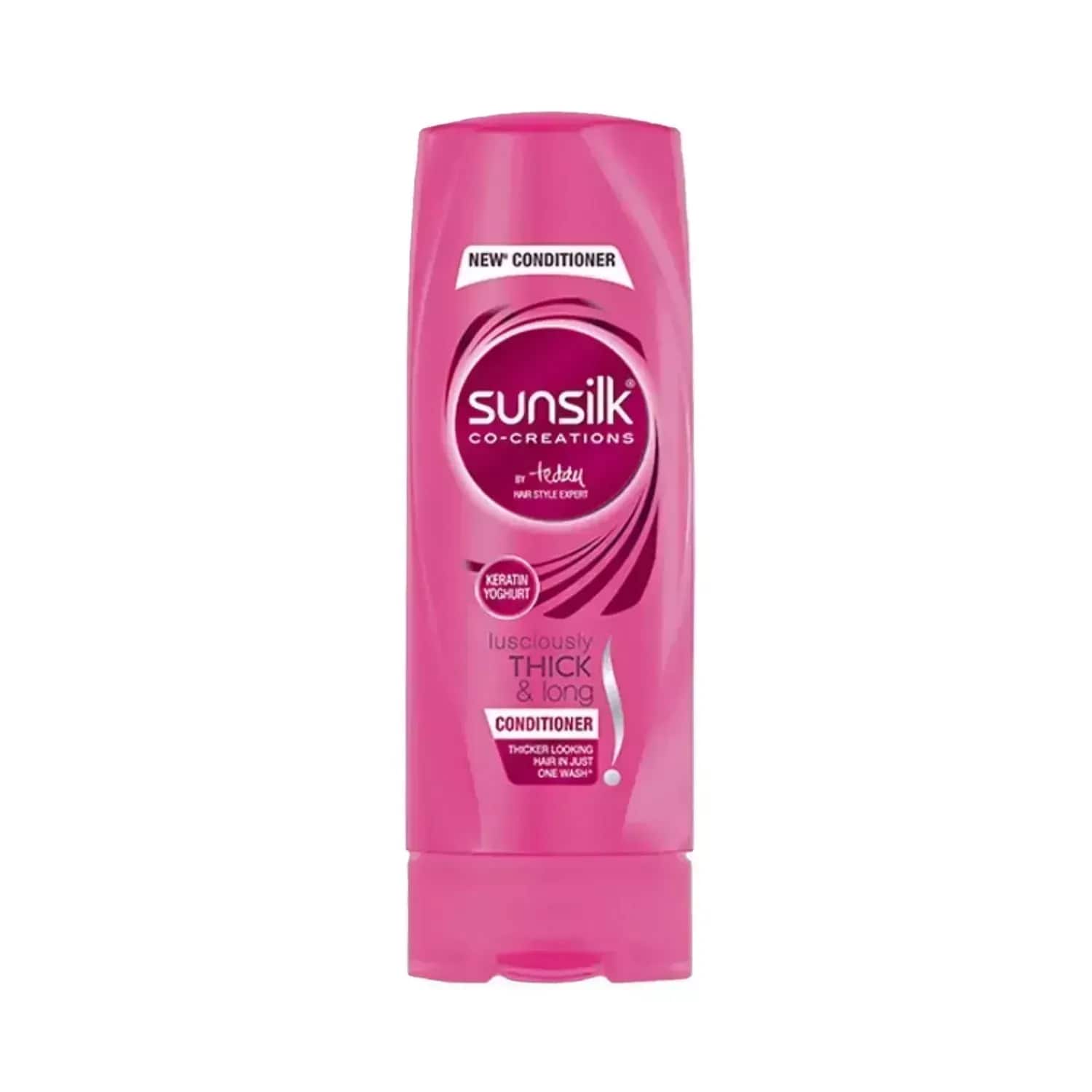 Get longer, healthier hair with the Sunsilk Lusciously Thick & Long Conditioner - (80ml). This nourishing conditioner contains keratin yoghurt complex to provide intense hydration and promote long-lasting volume. It also provides thicker, healthier-looking hair and safeguards hair from sun damage. This gentle conditioner is free from parabens for safe use.Key Features & Benefits:Enriched with keratin yoghurt complex to deeply nourish and promote voluminous hairThick and long conditioner offers 2X times thicker and bouncy hair and protects hair from sun damageFree from parabens for gentle applicationSuits all hair typesKey Ingredients:Keratin yoghurt complex: Deeply nourishes and promotes voluminous hairHow to Use:After washing with shampoo, apply conditioner to your hair, focusing on the ends of your hair and working your way upwards. Wait for a minute and rinse it out.All Ingredients:Water, Sodium Laureth Sulfate, Dimethiconol, Ea-Dodecylbenzenesulfonate, Cocamidopropyl Betaine, Sodium Chloride, Perfume, Carbomer, Guar Hydroxypropyltrimonium Chloride, Mica, Titanium Ioxide, Peg-45M, Dmdmhydantoin, Disodiumedta, Citricacid, Sodiumhydroxide, Methylchloroisothiazolinone And Methylisothiazolinone, Lysinehydrochloride, Ydrolyzedmilkprotein, Urea, Disodiumphosphate, Biotin, AgraniasAbout the Brand:Founded in 1954, Sunsilk is the world's leading haircare brand committed to providing quality hair care products at affordable prices for over 50 years. The brand carefully creates new products and develops formulas for all hair types, so every girl's hair has the shine it deserves! Sunsilk believes that every girl deserves great hair, hair that's ready for every possibility. All their products are inclusive of every hair colour, length, and texture. The brand is now certified by PETA and offers a wide range of shampoos and conditioners for every hair type.Check out more Sunsilk Conditioner options here, or browse through tokocart's full range of Conditioner from top global brands.You can also explore other products from the world of Sunsilk here on tokocart.