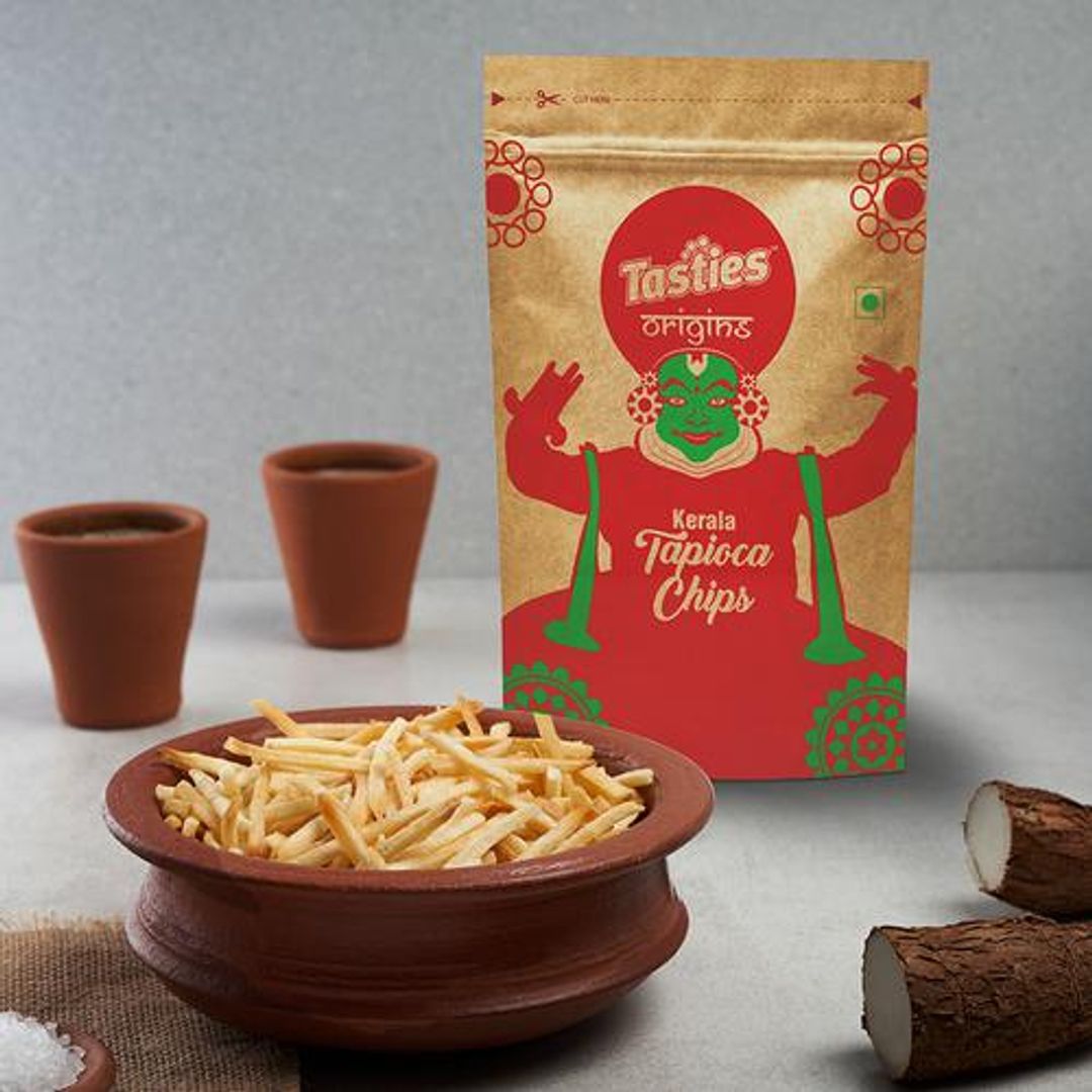About the ProductTasties Origins Kerala Tapioca Namkeen Chips are made using recipes that have been passed down through the generations and contain authentic Keralan flavours and ingredients. The Kerala Namkeens collection offers flavours from the region of spices. You can enjoy delectable snacks and treats at any time of day by using carefully hand-picked coconuts, bananas, tapioca, and other ingredients. Enjoy this selection of Namkeens from Kerala that are Crispy, spicy, sweet, and savoury to satisfy any cravings you may have. They are low in cholesterol and saturated fat, gluten-free, and vegan-friendly. These chips are a healthy snack option for people looking for a low-calorie and low-fat snack because they are an excellent source of dietary fibre, potassium, and other important vitamins and minerals. Get something to suit every taste with the Tasties Origins food assortment. When you taste these namkeen nibbles, which are made using traditional methods, you will be reminded of your grandmother's enticing sweets. To satiate your hunger, take advantage of our extensive selection of Indian-inspired snacks from Madras to Kerala and beyond. All flavours, including salty, sweet, sour, and spicy, should be consumed in moderation. Purchase today only on Big Basket, and they will be delivered right to your door.