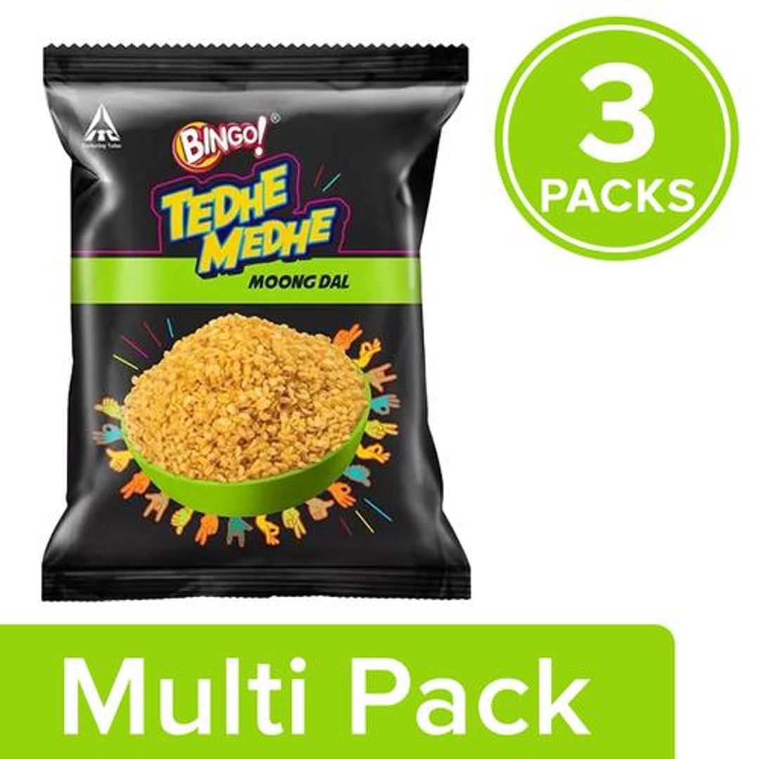 Bingo Tedhe Medhe Moong Dal is the crispy and crunchy flavour of moong dal that is flavoured with traditional namkeen. We bring to the delicious namkeen mixture. This will satisfy your spicy cravings. Every bit of this snack will leave you wanting more. A new and delightful desi flavour, made with handpicked spices that add a special aroma to it. It is crunchy and has a well-balanced flavour, making a delightful snack. It is a perfect snack for any occasion be it a get to gather with friends or a party.