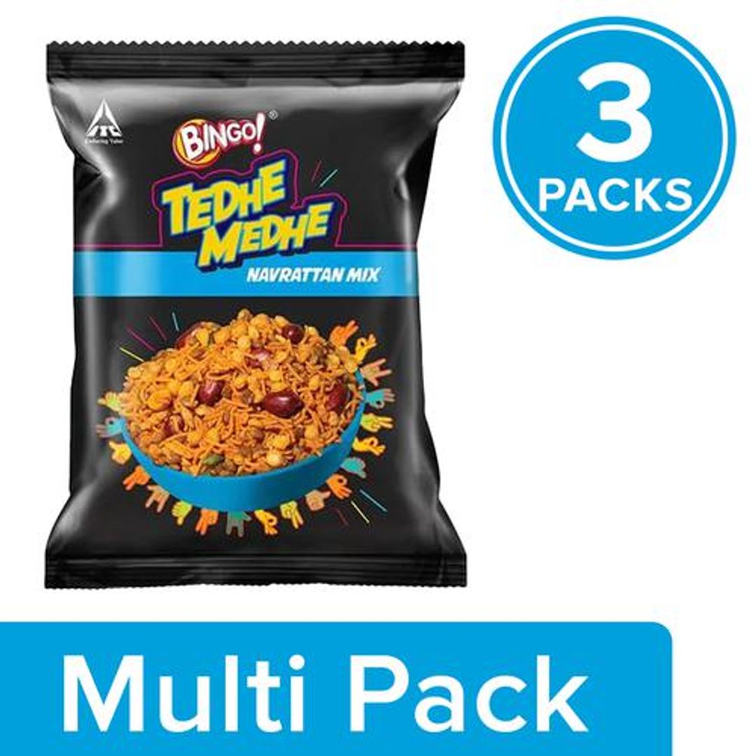 Satisfy your snack cravings anytime, anywhere with a yummy and crunchy Bingo Tedhe Medhe Namkeen Mixture.