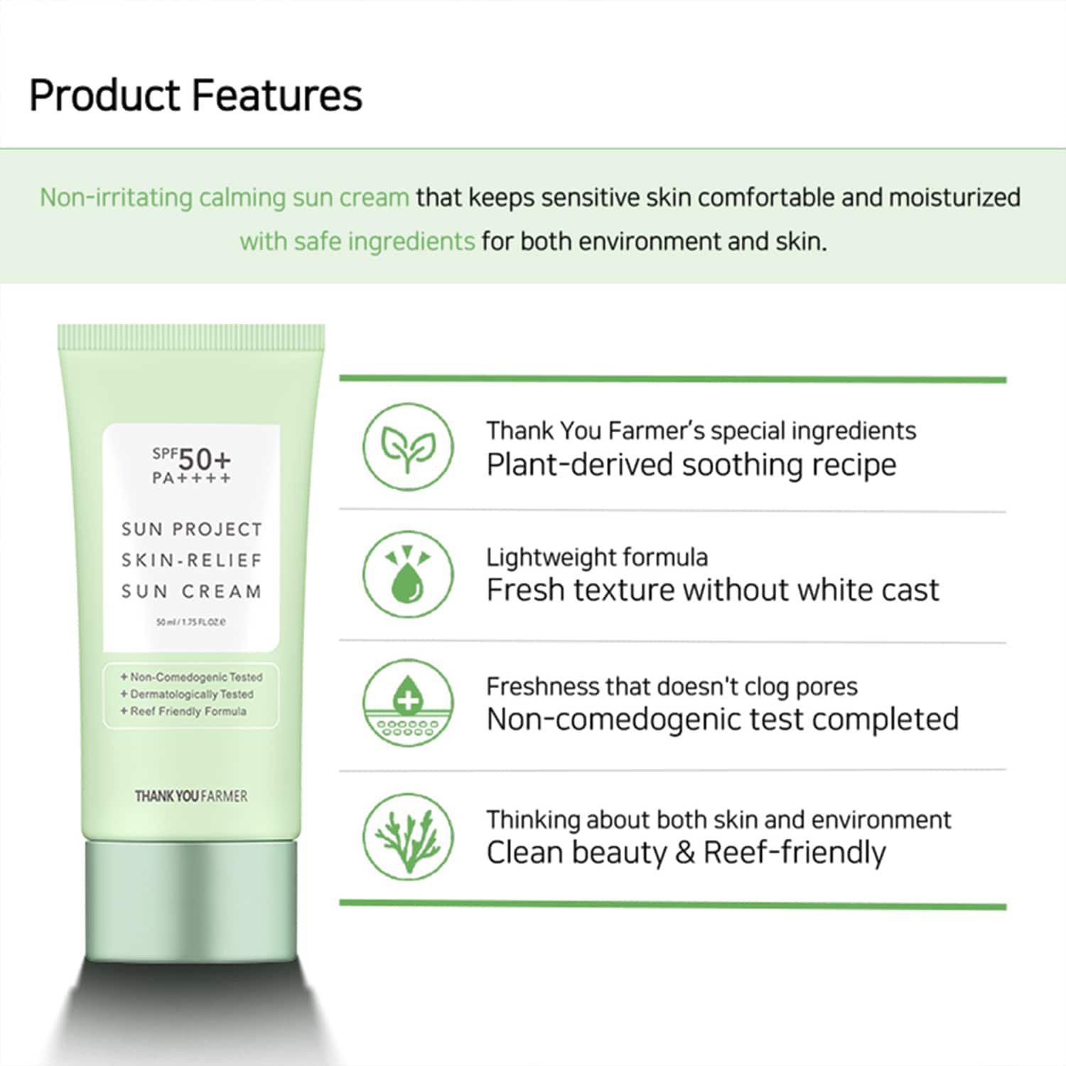 Thank You Farmer Sun Project Skin Relief Sun Cream SPF50+ PA++++ (50 ml)