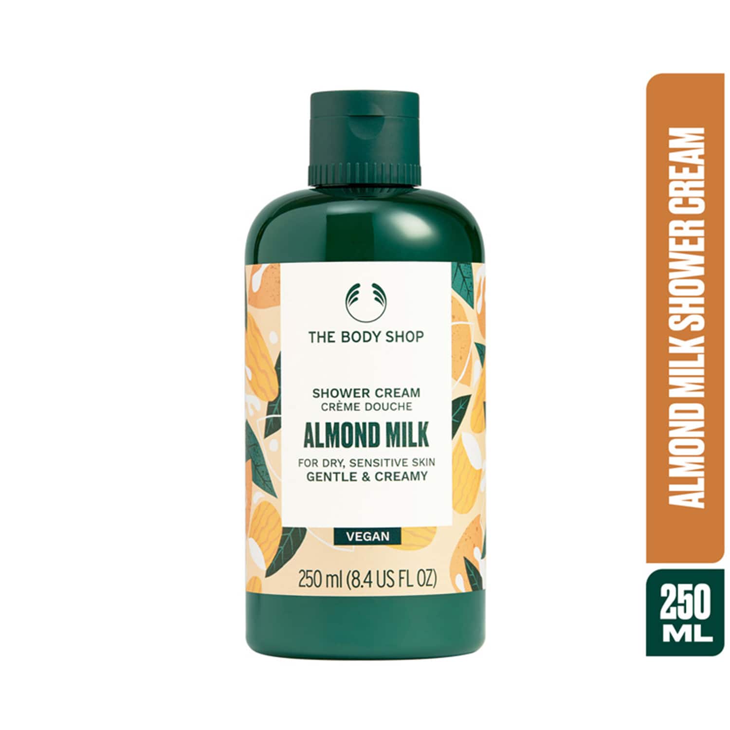 Cleanse and nourish your skin with the The Body Shop Almond Milk Shower Cream (250ml). This moisturizing shower cream is enriched with organic almond milk and honey to soothe and hydrate dry skin as it cleanses. Also, this soap-free shower gel does not disturb the skin's natural moisture barrier or pH. Plus, this The Body Shop shower cream softens the skin and refreshes the senses.Key Features & Benefits:Formulated with organic almond milk and honey to nourish and moisturize the skinSoap-free shower gel does not strip off the skin's moisture barrierGently removes dirt, grime, and impurities without disturbing the pH levelsDermatologically tested formula is specially formulated for sensitive, dry skinKey Ingredients:Almond milk and oil: Have vitamin E to nourish and moisturize the skinHoney: Moisturizes and nourishes the skinAll Ingredients:Aqua, Cocamidopropyl Betaine, Glycerin, Helianthus Annuus Seed Oil, Coco-Glucoside, Sodium Chloride, Parfum, Acrylates/C10-30 Alkyl Acrylate Crosspolymer, Citric Acid, Sodium Benzoate, Sodium Hydroxide, Glyceryl Laurate, Mel, Prunus Amygdalus Dulcis Oil, Disodium Edta, Tocopherol, Polysorbate 20, Glycolic Acid, Denatonium Benzoate, Prunus Amygdalus Dulcis Seed Extract, Xanthan Gum, Benzyl Alcohol, Dehydroacetic Acid.How to Use:Pour some drops of body wash into the loofah. Create a rich lather and massage over your skin in a circular motion. Rinse well after use and get smooth and shiny skin.About the Brand:The Body Shop is a personal care brand founded by Anita Roddick in 1976. The brand uses ethically sourced and natural ingredients to produce innovative products. Their range of products includes body butter, shower gels, shampoos, conditioners, and much more. The brand redefines the idea of beauty by promoting self-love and body positivity. Their commitment to sustainable and ethical practices has made them a favorite among conscious consumers."Check out more The Body Shop Body Wash & Shower Gel options here, or browse through tokocart's full range of Body Wash & Shower Gel from top global brands.You can also explore other products from the world of The Body Shop here on tokocart.