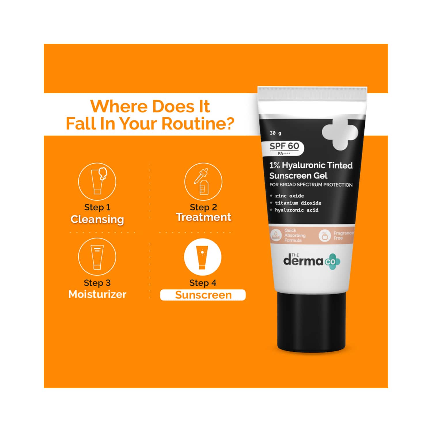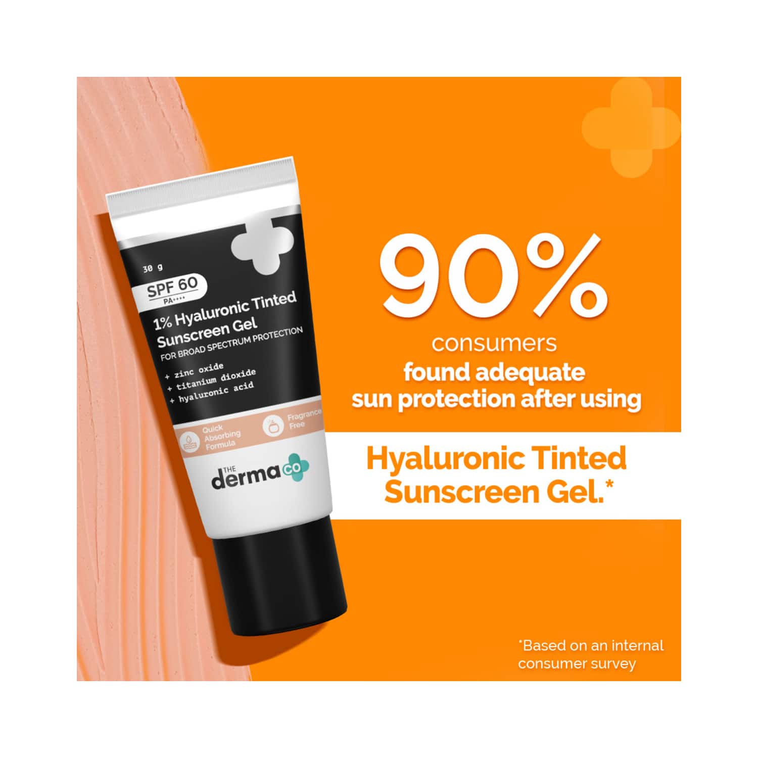 The Derma Co 1% Hyaluronic Tinted Sunscreen Gel With SPF 60 PA++ (30g)
