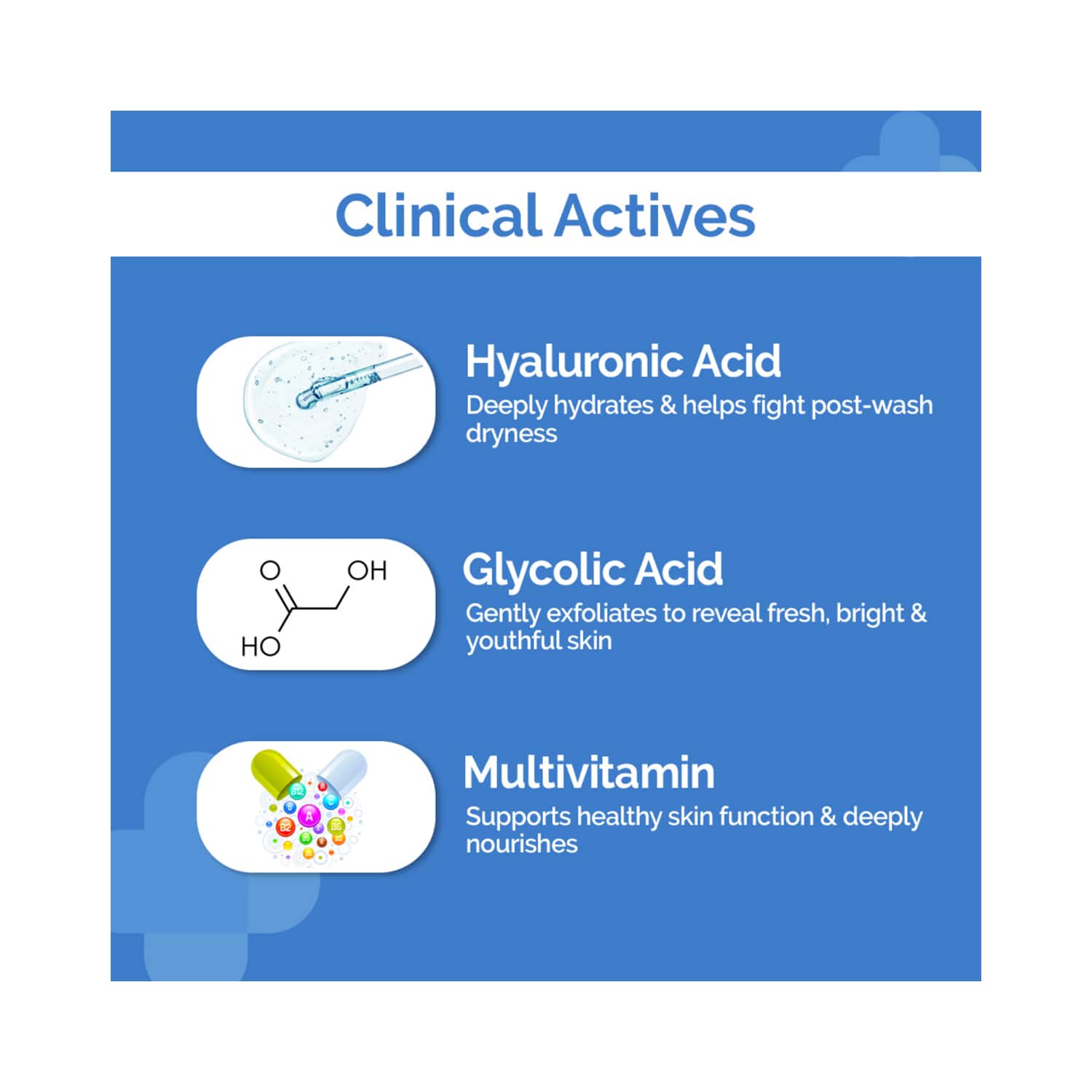 Key Ingredients:Hyaluronic acid, glycolic acid, and multivitamins: Cleanse and brighten skin