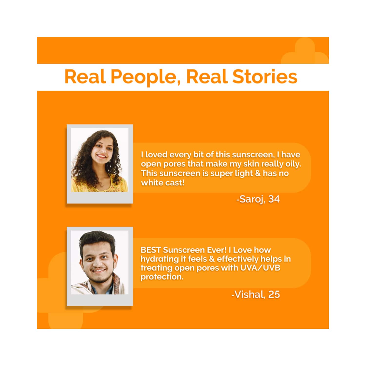Opt for a flawless, air-brushed look with the The Derma Co. Pore Minimizing Priming Sunscreen With SPF 50 PA++ (50g). This nourishing sunscreen is formulated with niacinamide, a broad-spectrum ingredient that protects your skin against both UVA and UVB rays. It gives your skin a seamless finish while controlling excess oil to keep your face dry and fresh all day. And last but not least, the no-white cast formulation of this Derma Co. sunscreen provides you with brilliant coverage without feeling cakey on the skin!