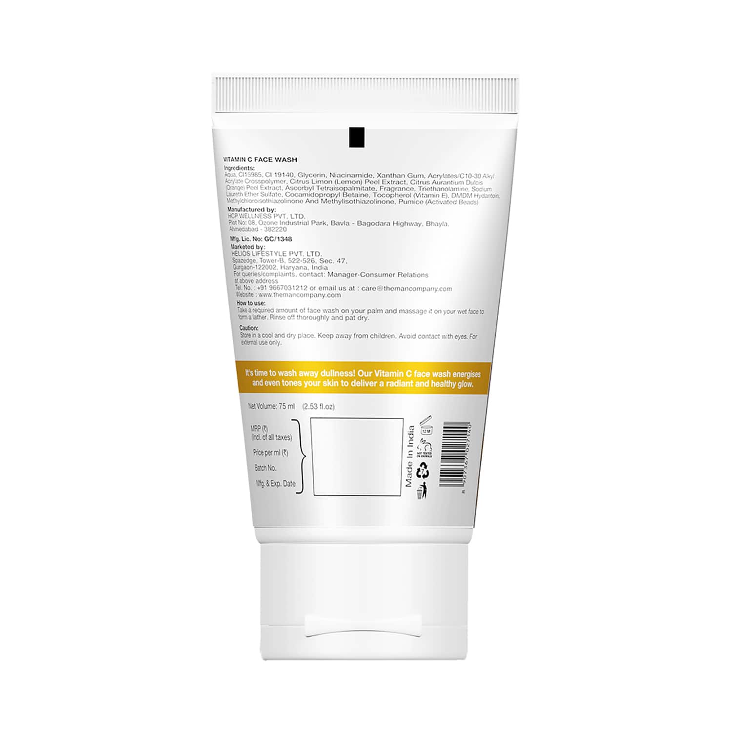 Achieve radiant, flawless skin with the The Man Company Anti Ageing & Skin Brightening Vitamin C Face Wash (75ml). This refreshing face wash deeply cleanses your pores without stripping away essential moisture content. Also, The Man Company face wash contains vitamin C and niacinamide to minimize hyperpigmentation and even out the skin tone.Key Features & Benefits:Infused with vitamin C to boost collagen production and promote glowing skinEnriched with niacinamide to regulate oil production and provide anti-inflammatory propertiesReduces hyperpigmentation and evens out the skin tonesGently cleanses to remove dirt and impuritiesFree from toxins for safe useKey Ingredients:Vitamin C: Promotes collagen production and adds a natural glowNiacinamide and turmeric: Regulate oil production and provide anti-inflammatory propertiesAll Ingredients:Demineralized Water, Glycerin, Lemon Peel Extract, Orange Peel Extract, Vitamin B3, Xanthan Gum, Acrylates/C10-30 Alkyl Acrylate Crosspolymer, Ascorbyl Tetraisopalmitate, Fragrance, Triethanolamine, Sodium Lauryl Ether Sulphate, Cocamidopropyl Betaine, Vitamin E, Dmdm-Hydantoin, Methylchloroisothiazolinone And Methylisothiazolinone, Activated Beads, Ci 15985, Ci 19140How to Use:Take a small amount of face wash and apply it to the damp face. Lather and eventually rinse with water. Use regularly for good results.About the Brand:The Man Company is a luxury brand that curates grooming products for men of all ages. The brand strives to support men in their ongoing transformation into better versions of themselves by providing high-end grooming essentials to suit every individual's needs. Their goal has always been to create the purest, best-quality skin, hair, and body care products. Their product offers modern gentlemen the chance to look and feel their best while tackling the world. Moreover, all their products are free of dangerous chemicals and contain premium essential oils and hand-selected natural components.Check out more The Man Company Face Wash options here, or browse through tokocart's full range of Face Wash from top global brands.You can also explore other products from the world of The Man Company here on tokocart.