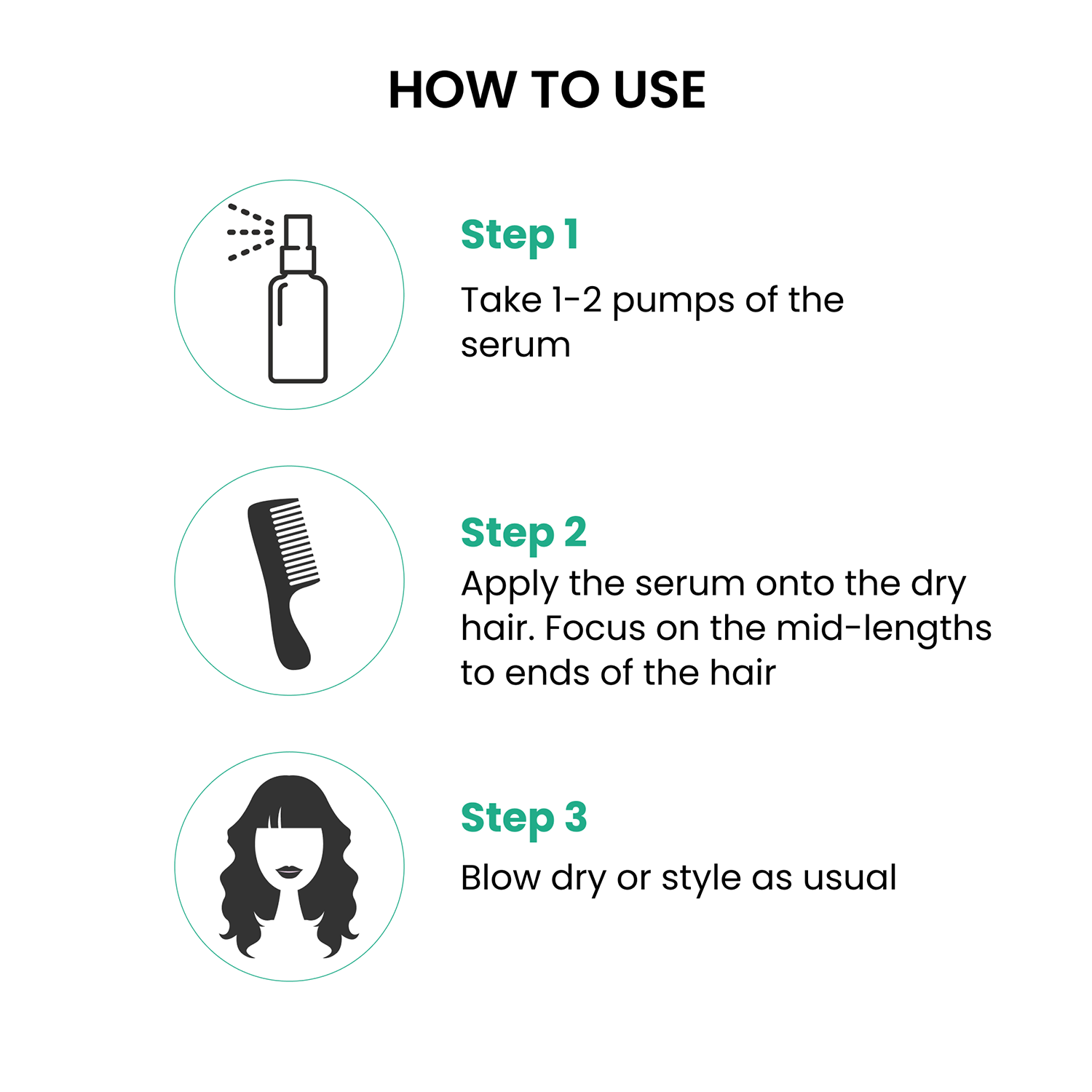 How to Use:Take 1-2 pumps of the serum in your palms. Apply the serum to dry hair, focusing on the lengths and ends. Blow dry or style your hair as usual.