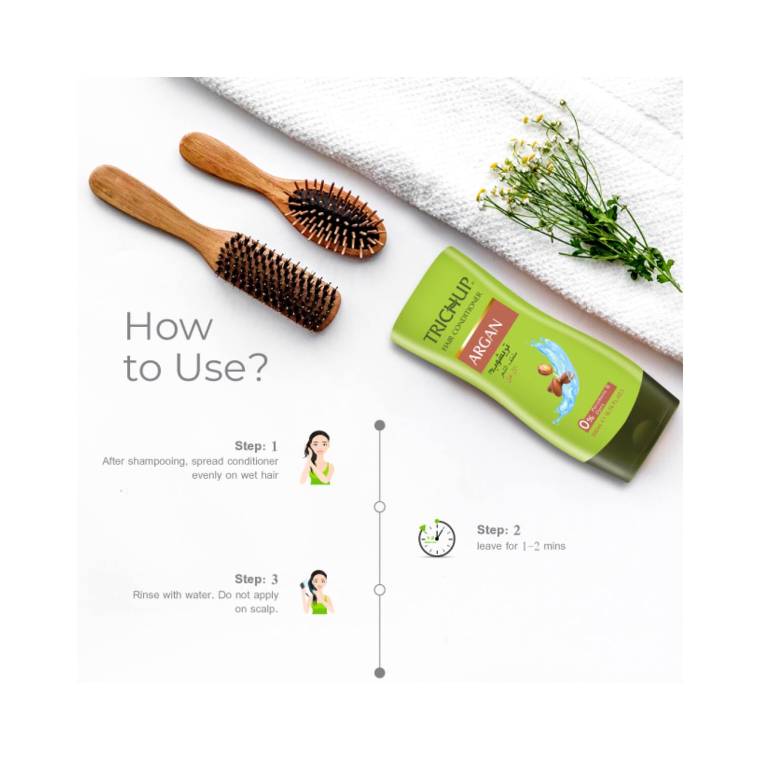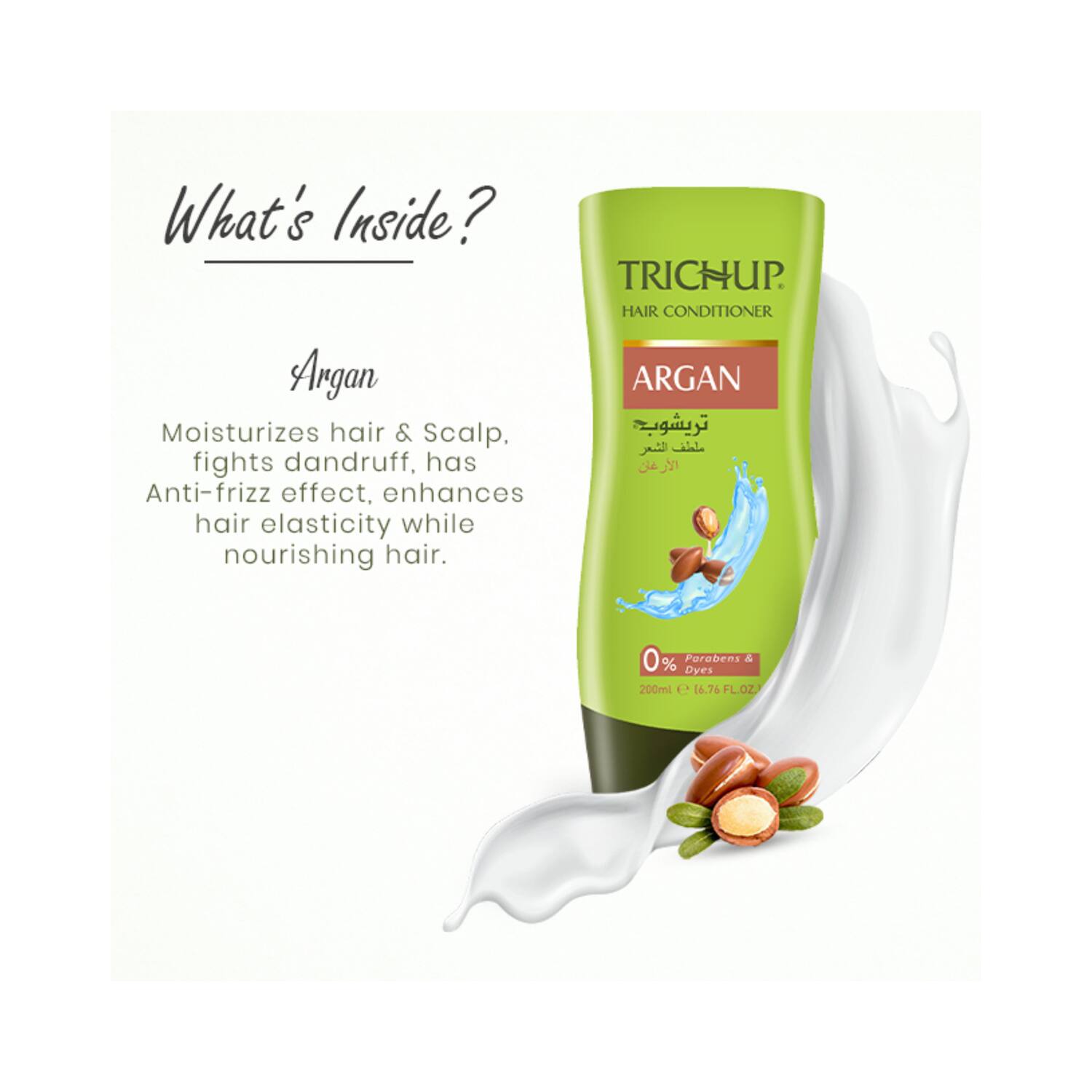Get beautiful and luscious hair with the Trichup Argan Hair Conditioner (200ml). This argan hair conditioner is specially formulated with ingredients to repair damaged hair and improve elasticity. It is an anti-frizz conditioner that reduces hair frizziness and dryness. The Trichup hair conditioner is also a hydrating conditioner that provides soft hair.Key Features & Benefits:Enriched with argan to improve hair elasticityNourishing conditioner hydrates the hairMoisturizing conditioner provides soft and manageable hairFree from paraben and synthetic color for safe useKey Ingredients:Argan: Repairs damaged hairHow to Use:Shampoo your hair and rinse off well. Apply a small amount of conditioner to your scalp and hair strands. Leave it for 1 minute and wash off with water for softer and bouncier hair.About the Brand:Trichup, a flagship brand of Vasu Healthcare, was founded in the year 1990. They create hair care products that address various hair problems, including hair loss, dandruff, and dry, dull, and frizzy hair. Their products include oils, shampoos, serums, hair creams, and much more. Each brand product is made of natural and potent herbs, making it a brand trusted and recommended by doctors. In addition, Trichup products are also free of chemicals to ensure safe and long-term usage.Check out more Trichup Conditioner options here, or browse through tokocart's full range of Conditioner from top global brands.You can also explore other products from the world of Trichup here on tokocart.