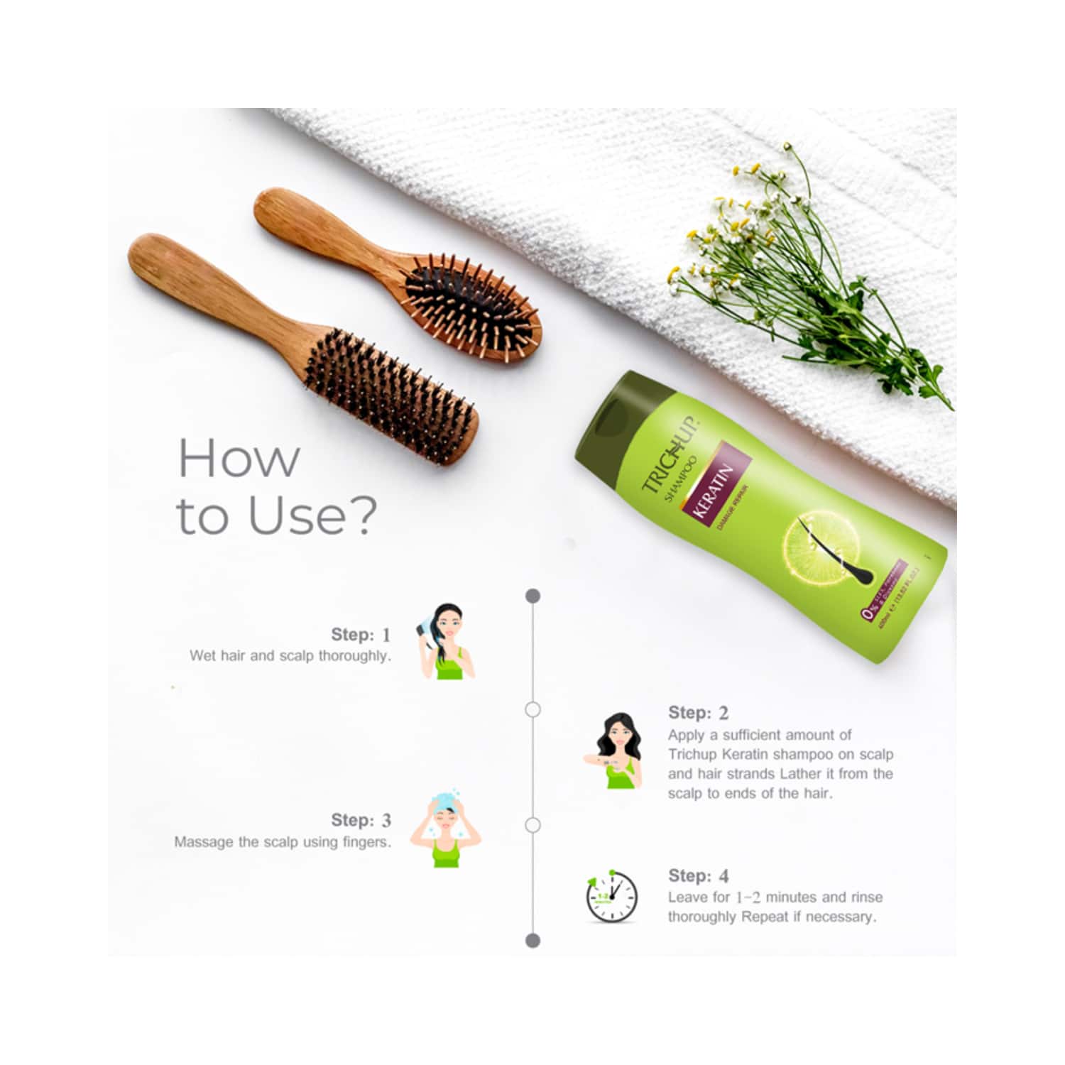 Get soft and beautiful hair with the Trichup Keratin Hair Shampoo (400ml). This keratin shampoo retains moisture in the hair and increases hair volume. It is a damage-repairing shampoo that reduces split ends and repairs damaged hair. The Trichup shampoo is also a hair-strengthening cleanser that provides strong hair roots.Key Features & Benefits:Formulated with keratin to lock moisture in the hairVolumizing shampoo adds density to the hairAnti-frizz shampoo tames frizzy and dry hairFree from paraben and SLS for safe useKey Ingredients:Keratin: Reduces hair breakageHow to Use:First, wet your hair thoroughly. Then, squeeze the required amount of shampoo on your palm and create a lather by rubbing your hands together. Next, apply the lathered shampoo on your scalp generously. Last, rinse your hair with water and follow by using a conditioner.About the Brand:Trichup, a flagship brand of Vasu Healthcare, was founded in the year 1990. They create hair care products that address various hair problems, including hair loss, dandruff, and dry, dull, and frizzy hair. Their products include oils, shampoos, serums, hair creams, and much more. Each brand product is made of natural and potent herbs, making it a brand trusted and recommended by doctors. In addition, Trichup products are also free of chemicals to ensure safe and long-term usage.Check out more Trichup Shampoo options here, or browse through tokocart's full range of Shampoo from top global brands.You can also explore other products from the world of Trichup here on tokocart.