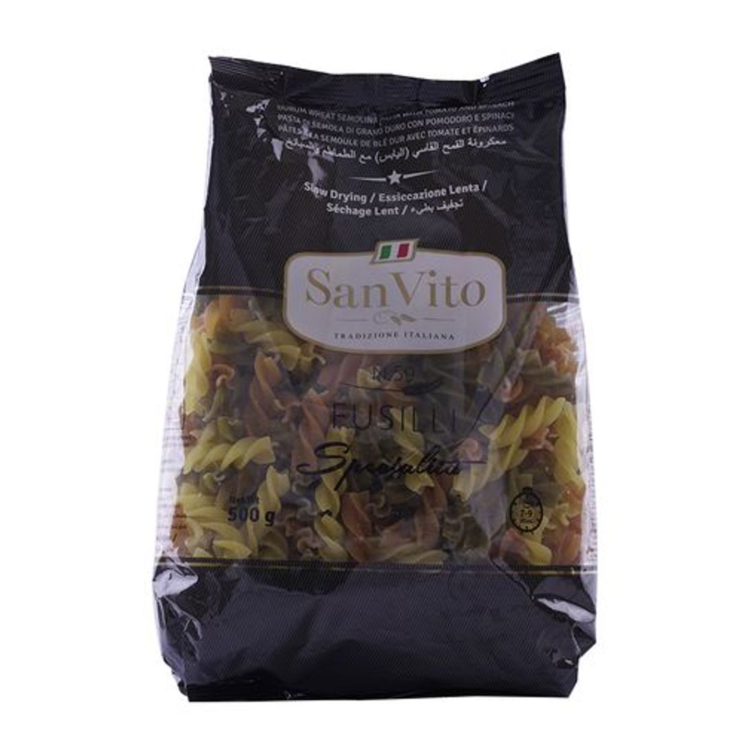 San vito tri-colour pasta is made by the slow drying process. The slow drying procedure, even if it longer and expensive, guarantees good product digestibility and the retention of proteins and amino acids, always preserving its taste. San vito durum wheat pasta is made exclusively with coarse durum wheat semolina, golden like the sun, to obtain a signature pasta with a distinctive taste.