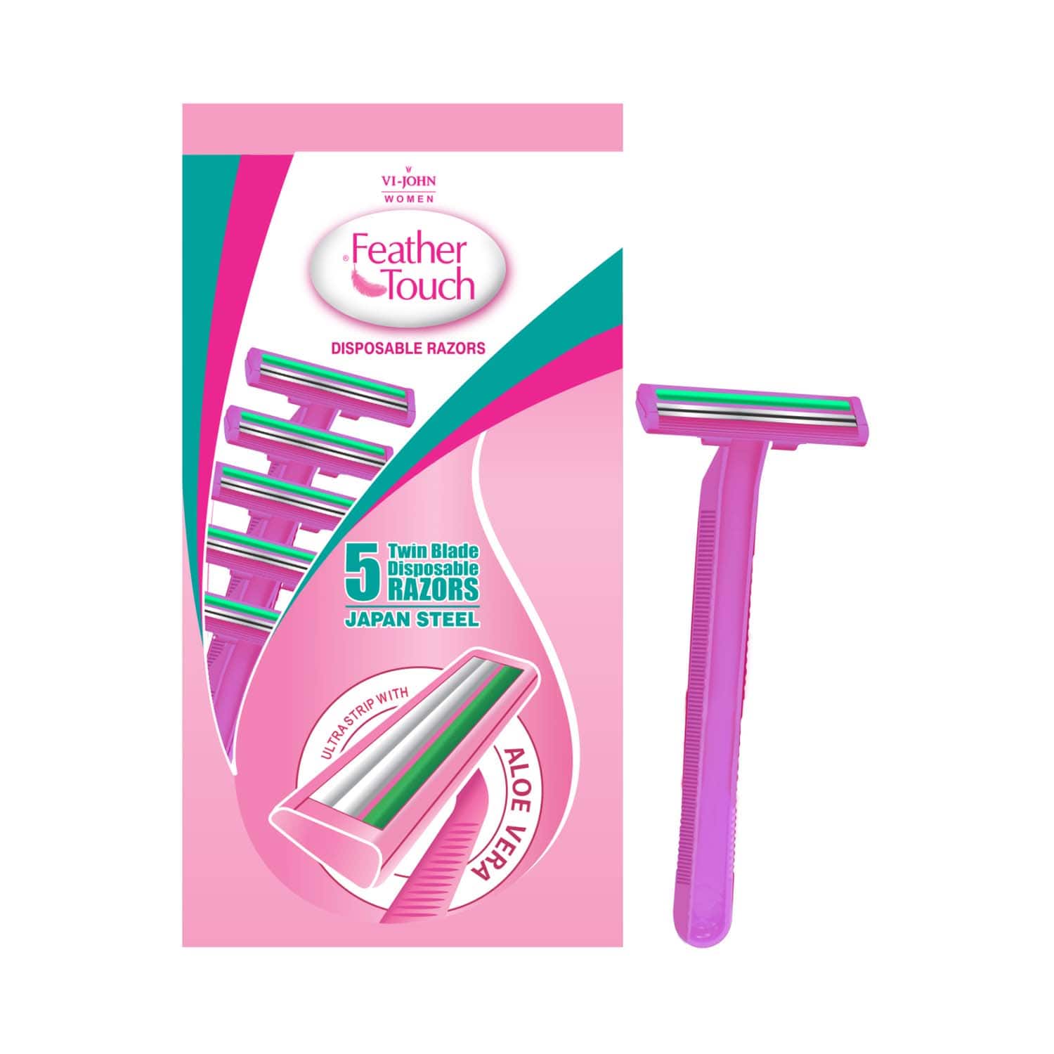 VI-JOHN Feather Touch Twin Blade Shaving Razors with Lubricating Aloe Vera Strip - Pink (5Pcs)
