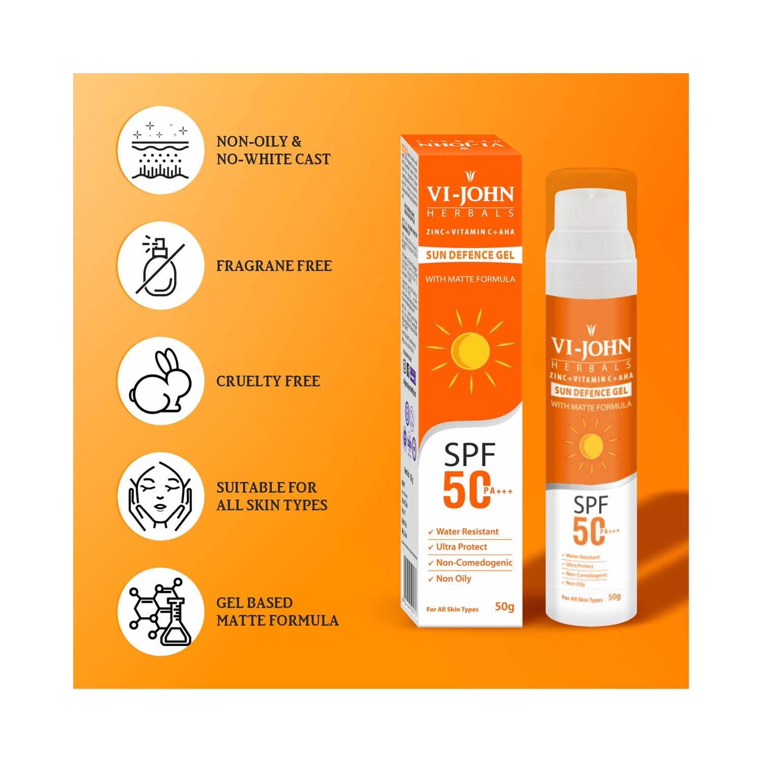 VI-JOHN Herbals Sun Defence Gel SPF 50 PA+++ with Matte Formula (50g)