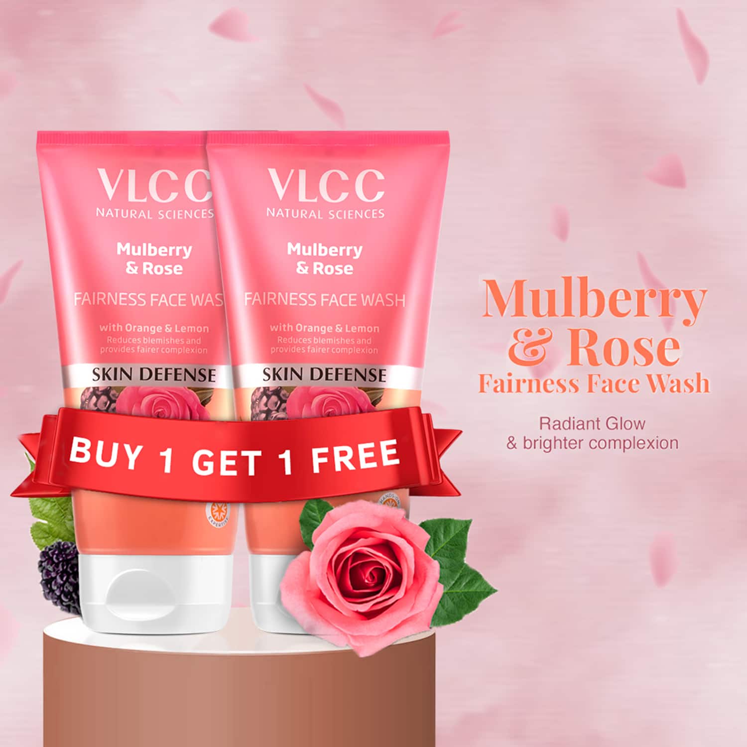 Get squeaky clean skin with the VLCC Mulberry and Rose Facewash B1G1 (150ml). Experience the potency of this effective cleansing formula that provides anti-pigmentation benefits. Infused with mulberry and rose extracts, it harnesses natural lightening properties to diminish dark spots and hyperpigmentation. This face wash is expertly crafted to minimize pores and diminish blemishes, leaving your skin refreshed and revitalized. Its vital ingredients act as protective agents against free radicals, ensuring your skin remains shielded from damage.Key Features & Benefits:Anti-pigmentation formula that deeply cleanses your skinFeatures mulberry and rose extracts for natural lightening effectMinimizes large open pores and diminishes the appearance of blemishesProtects the skin against free radicalsKey Ingredients:Rose: Has astringent properties which helps fade pigmentationMulberry: Has arbutin which helps inhibit melanin synthesis to prevent pigmentationOrange and lemon peel extract: Lightens and brightens the skin complexionHow to Use:Take a small amount of this cleansing formula onto your fingertips or a cleansing brush, depending on your preference. Gently massage the formula onto your face in circular motions. Rinse thoroughly with lukewarm water and pat your face dry with a clean towel. Follow up with a moisturizer to keep your skin hydrated.About the Brand:VLCC aspires to transform lives by making Beauty & Wellness accessible to all.
